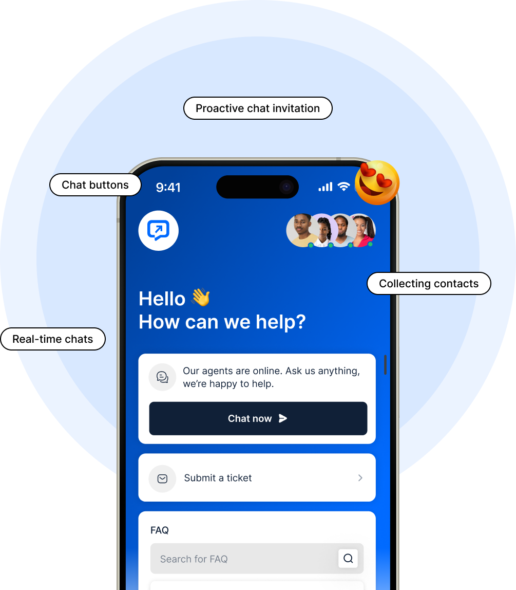 Match the chat widget to your brand with custom colours, position, welcome messages, and pre-chat forms.
